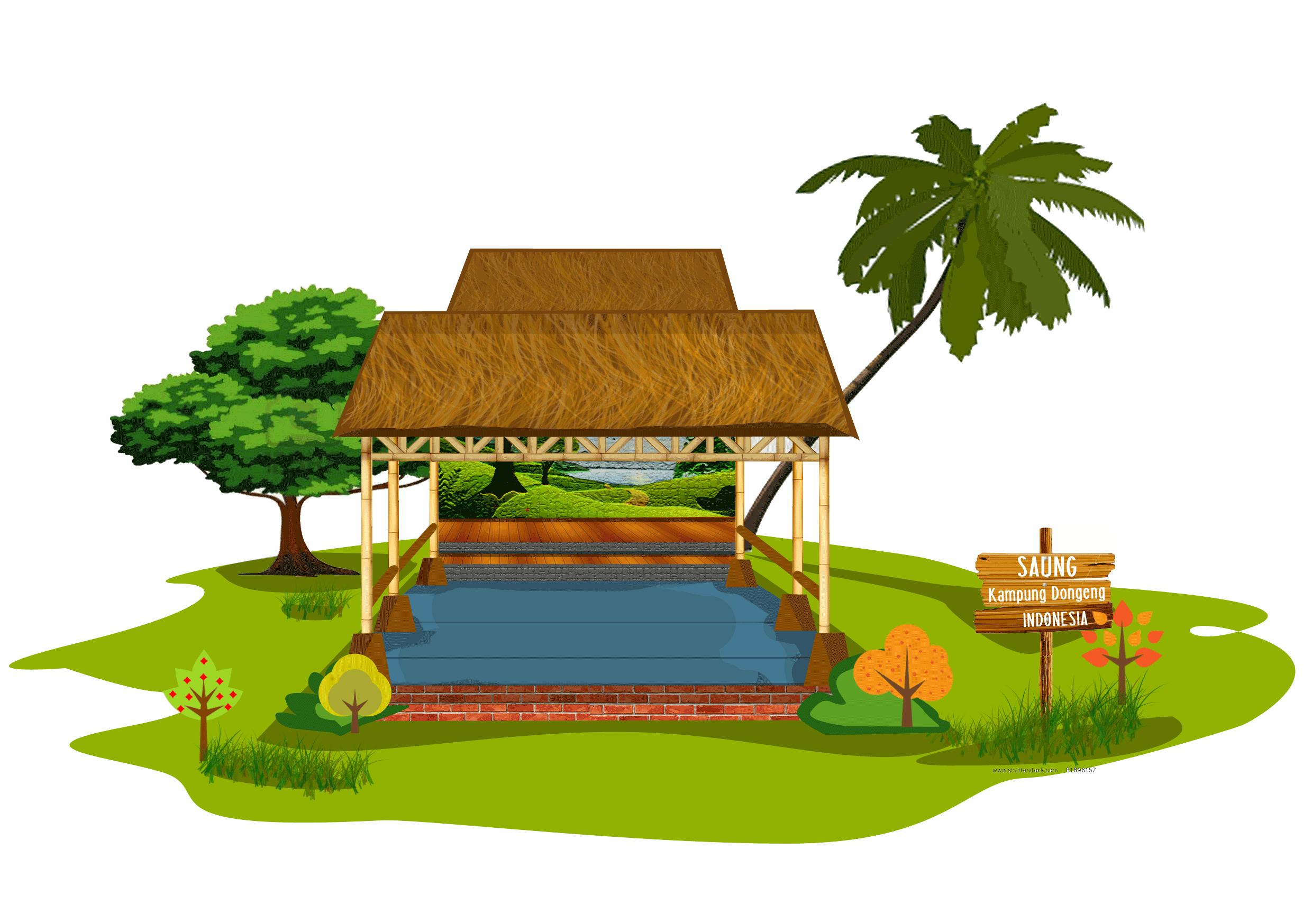 Saung Kampung Dongeng yang sejuk dapat dikunjungi sekolah baik PAUD/TK, SD, SMP yang berkunjung ke Kampung Dongeng untuk mendapatkan sajian dongeng dan membuat prakarya dari berbagai bahan yang dapat dibeli di kampong dongeng.
